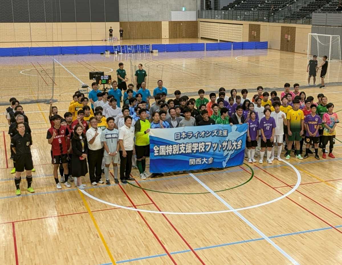 2025年8月28日(木)、大阪府堺市立大浜体育館(大浜だいしんアリーナ)にて、公益財団法人日本ライオンズ主催「全国特別支援学校フットサル大会」東関西・西関西地区大会が開催されました。本大会は日本で唯一、特別支援学校を対象とした全国規模のスポーツ大会であり、今年で第4回を迎えます。両地区の優勝校は、11月1日(土)に東京都武蔵野で行われる全国大会への出場権を獲得します。