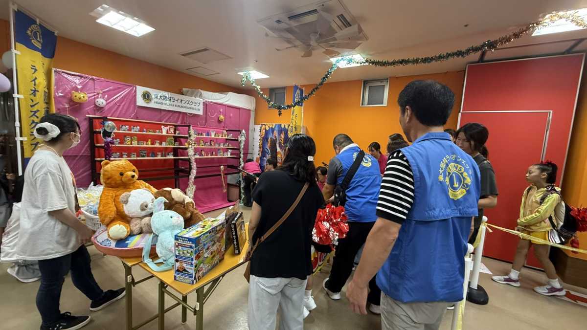 東大阪楠ライオンズクラブは、会場設営・撤収のお手伝いや縁日コーナーの運営サポート、抽選会景品の協賛を行い、イベントの一端を担わせていただきました。