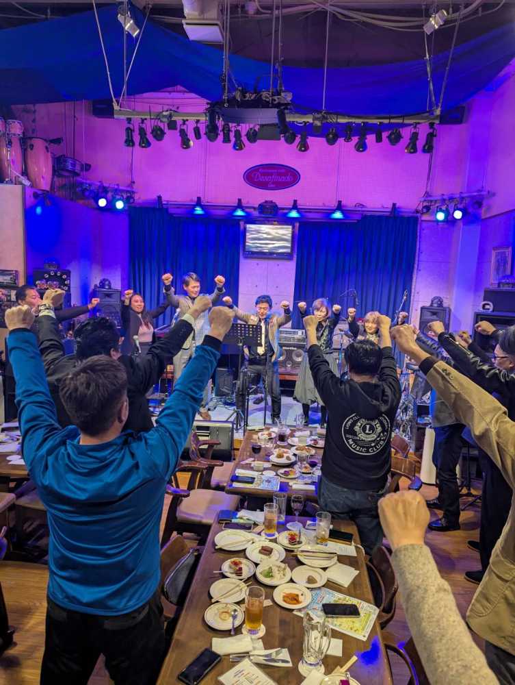 ギターやベース、ドラムの軽快なリズムに合わせ、ボーカルの歌声が響き渡る中、参加者はテーブルを囲みながら語らい、時には拳を掲げて一体感を表現する場面も見られました。例会という枠を超え、互いの個性や新たな一面に触れる貴重な時間となりました。