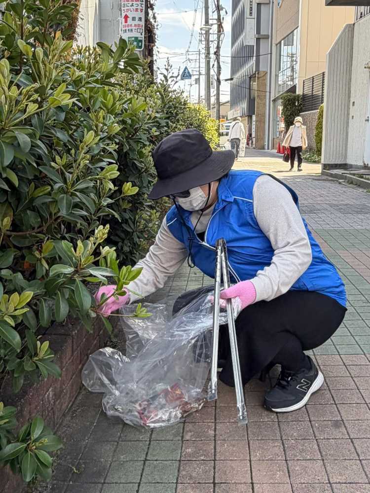 当日は駅前から商店街、幹線道路沿いにかけて広範囲にわたり、歩道や植え込みの中に落ちている空き缶やペットボトル、紙くず、特に一番多かった、たばこのポイ捨てなどを一つひとつ丁寧に拾い集めました。日頃は見過ごされがちな場所にも目を向けることで、地域環境の現状を改めて実感するとともに、美しい街づくりへの意識を高める機会となりました。